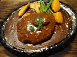 | 炭火焼ステーキ定食(300g) | ランプステーキ・サラダ・ごはん・香の物・日替わりスープ(焼き加減指定OK) | ¥3,080 |
