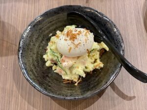 | ポテサラ -半熟卵添え- | 500円(税込) | 半熟卵を崩して混ぜると、クリーミーさが増してお酒にもよく合います。 |