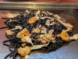 1. まずは源氏ミックス焼きそばor竹炭ブラック焼きそばで“もちもち麺”を体験。