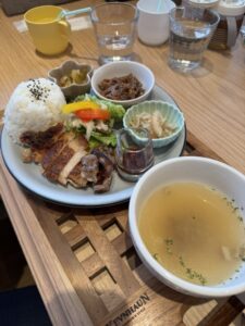 - ランチメニューはボリュームたっぷりで、野菜中心の手作り料理が人気。