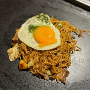 - 道頓堀焼きそばの太麺とソースが抜群。