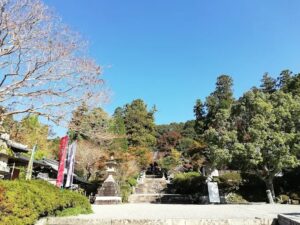 観心寺は歴史あるお寺のため、境内には石段や未舗装の小道が多く見られます。