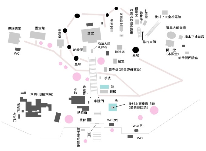 観心寺には珍しい「星塚」が点在しており、これは北斗七星をかたどった古代の修験道信仰の名残です。