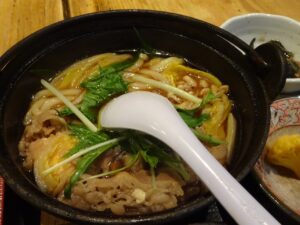 - 幼児には 玉子丼+湯ドーフ/肉うどん(¥780) のハーフ系が食べやすい。