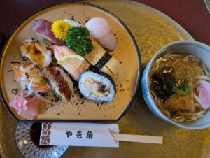 - 寿司定食は税込1,320円の実食例(にぎり+巻き+素麺など)。ランチのお得感が高い。