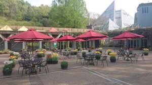 花の文化園では、屋内外にたくさんのベンチや休憩スペースが用意されており、ベビーカーのままでも利用できるエリアが多くあります。