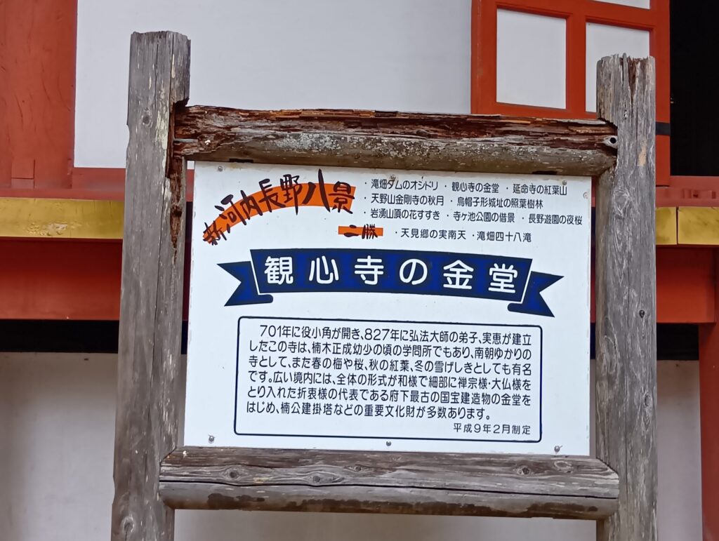 弘仁6年(815)に如意輪観音を本尊として安置し寺号を観心寺に改めたと伝えます(寺伝)。