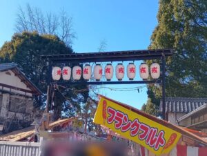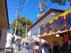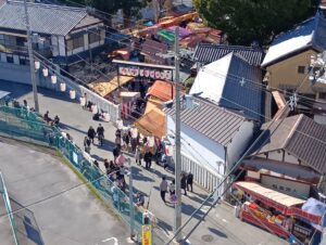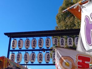 参拝と屋台めぐりを楽しんだあと、駅まで戻る途中の道にも屋台や幟が並び、まるでまち全体がお祭りモードになっているようなにぎやかさでした。