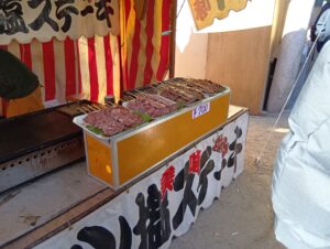 奥に進むと、炭火で焼かれる和牛焼きの屋台も。