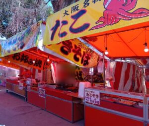 屋台の香りが最高!境内にずらりと並ぶ出店