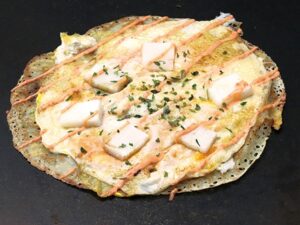 - 名物「わらい焼」と「京天焼」を親子でシェアしやすい…麺入り&ふわふわ食感で、取り分けもしやすいボリューム感です。