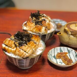 - 大人1+未就学児:鰻重(上)1つを大人中心にして、子どもは取り分け(骨に注意)
