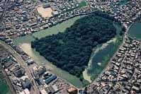 さらに、濠をめぐらせた巨大古墳で、資料では濠の幅が35〜70mとされるほど。