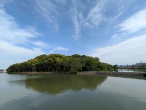 写真を撮るなら「水面+古墳の森+桜」を一枚に