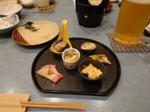 - 注文モデル(価格目安):お造り五種盛り(1,700円)+日替わり小鍋(要確認)+〆の寿司(要確認)