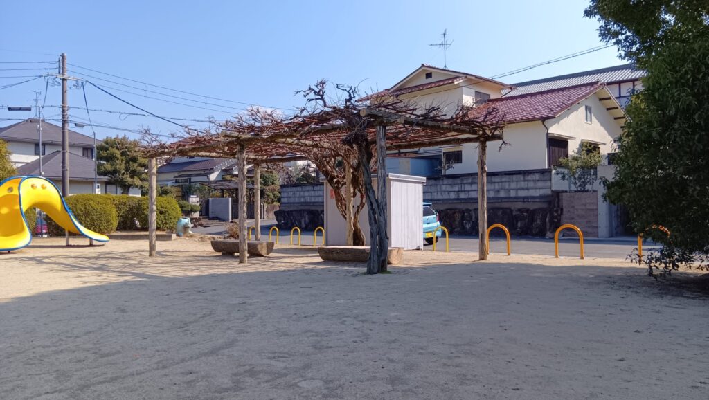 西山台第3公園は、遊具・砂場・ブランコ(2連)・藤棚ベンチがそろった、住宅街の“ちょうどいい”近隣公園です。