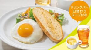 | ライトモーニングプレート | ¥455(税込¥500) | 日替わりスープ&ドリンクバー付き(朝限定) |