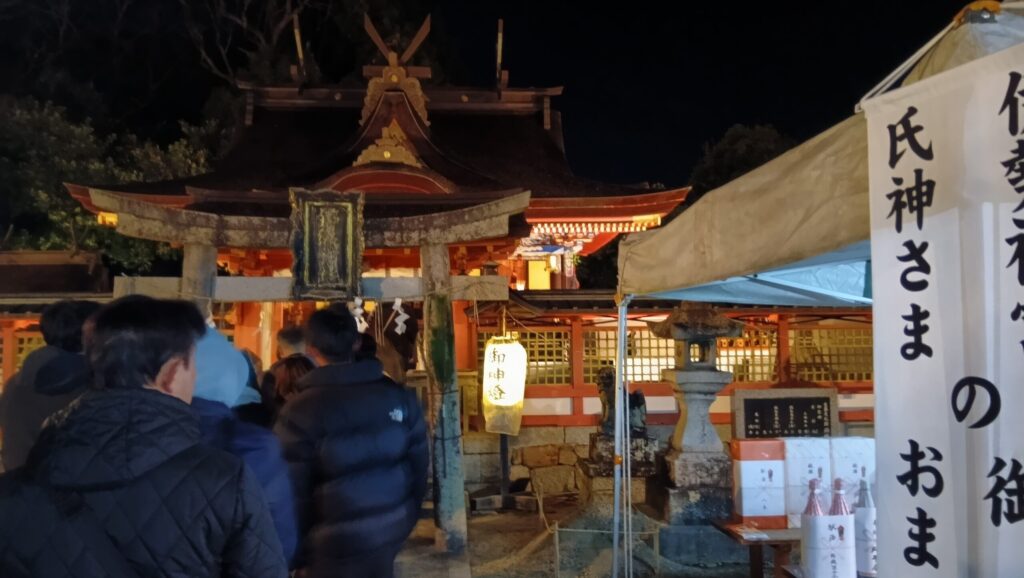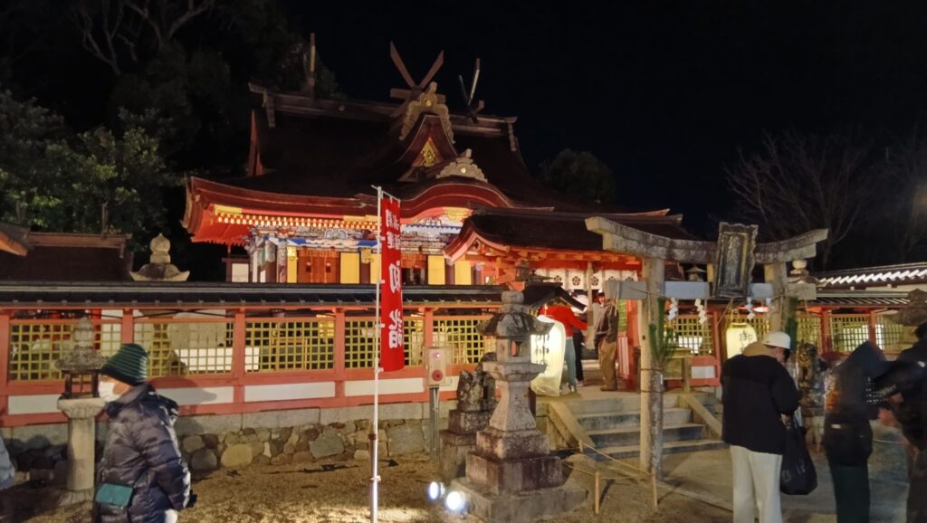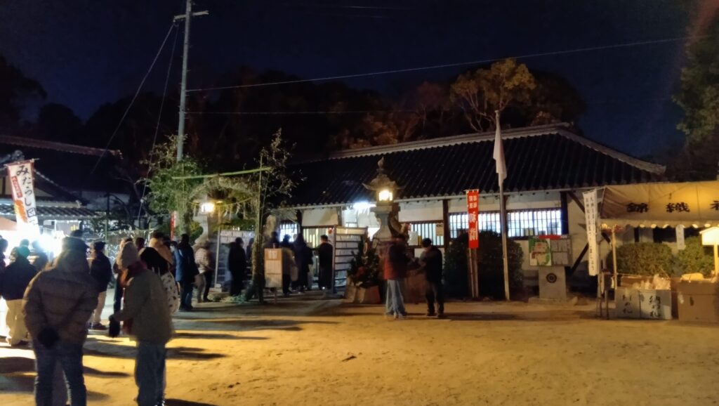 錦織神社の初詣は、元日・午前1時でもしっかり混雑していました。
